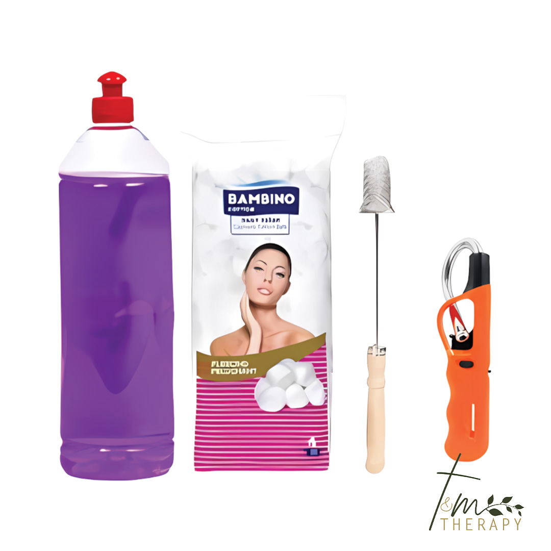 Set za paljenje namenjen je izvođenju vatrene hidžame i sadrži osnovne alate potrebne za bezbednu i kontrolisanu primenu ove metode. Omogućava organizovan i profesionalan rad tokom procesa zagrevanja čašica.